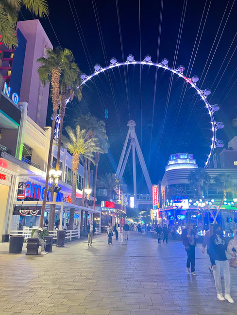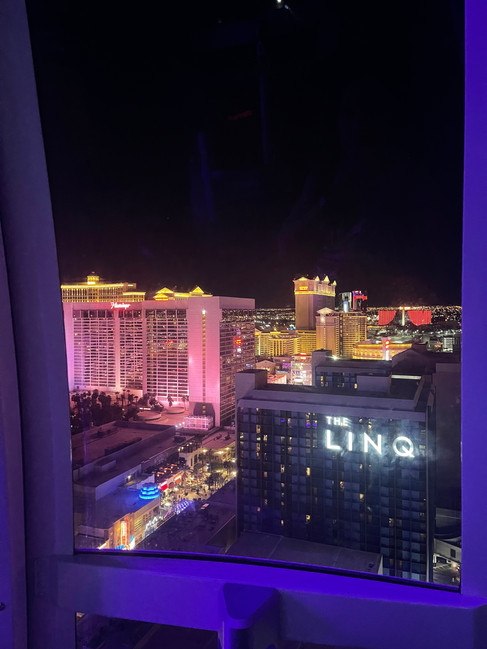 The Linq High Roller- We did this our first night there. We ended up getting lottery discounted tickets through Cesar's and basically got 2 for 1 on the price. It was such a fun vantage point to be that high up above the city.and see all the lights at night. I was a good ease into our trip and gave us a chance to soak in the strip and somewhat get the lay of the land from above. Keith was nervous and honestly I was only nervous getting right up the edge of the pods. They are quite large and spacious and give you plenty of room to move and walk around. The entire ride is 30 minutes and it is the second tallest ferris wheel in the world. They also have a bar right as you enter so you can buy drinks to take with you as you go. Walking to the Linq from Cesar's Palace was fun too because we got to walk the entire Linq Promenade- an entertainment district with restaurants, bars, and shops.